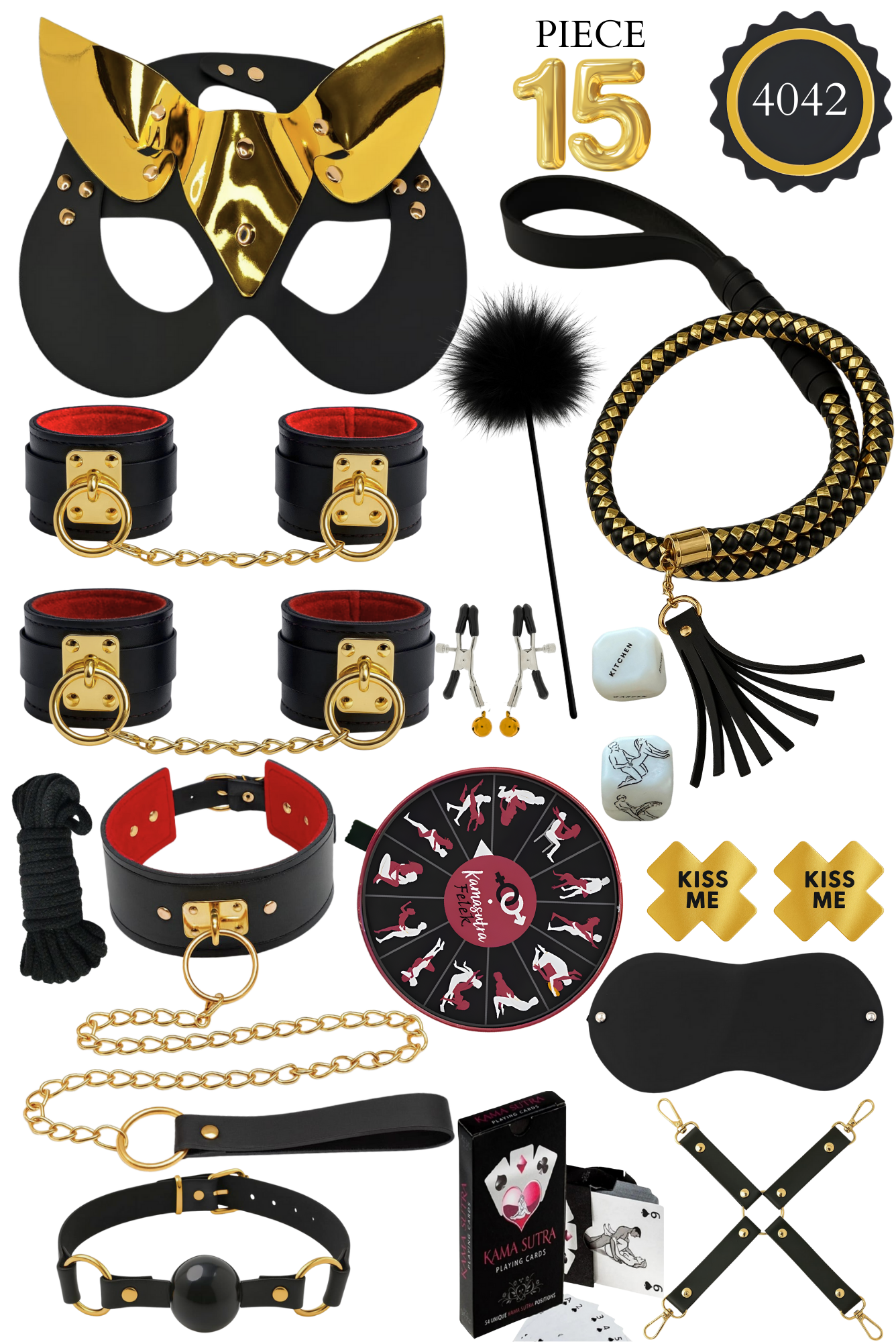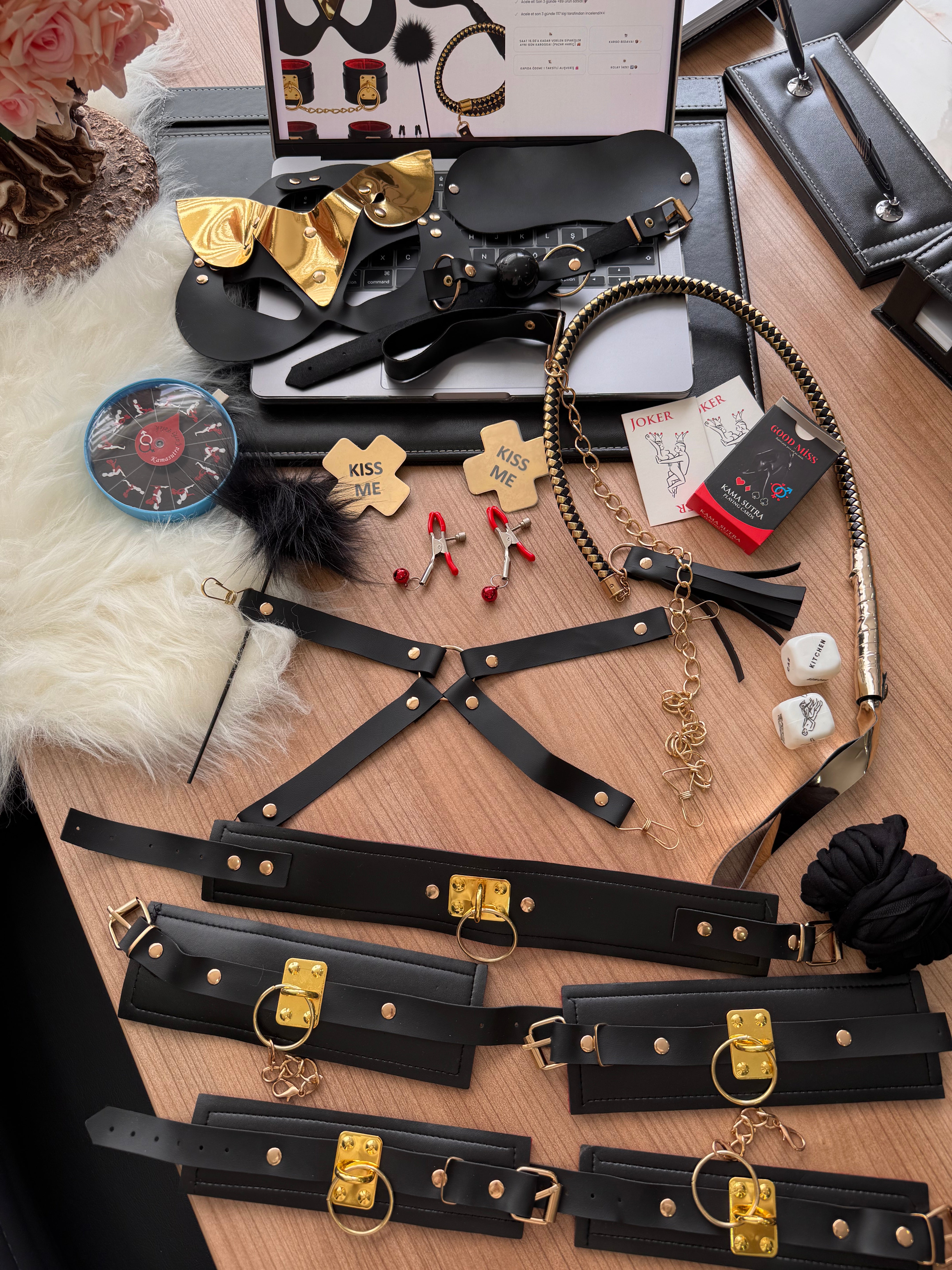 15 Parça Lüks Fantazi Oyun Seti – Maske, Kelepçe, Tasmalı & Aksesuar Hediyeli Premium Koleksiyon