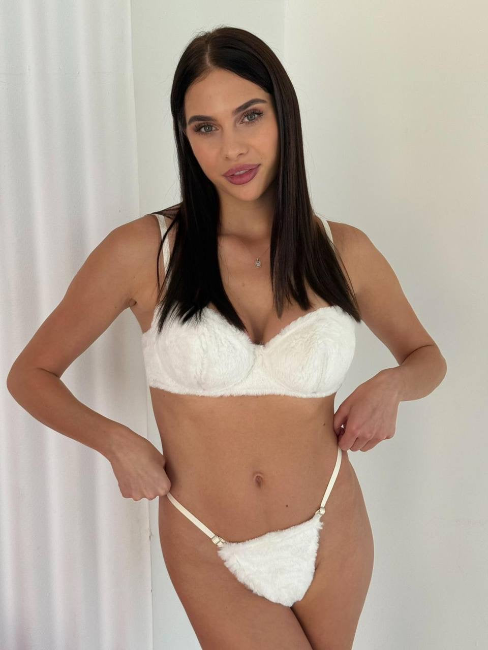 Bu takım 2 parçadan oluşur: Peluş sütyen ve peluş tanga.