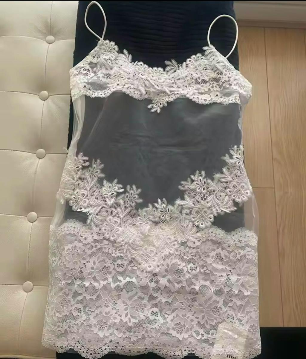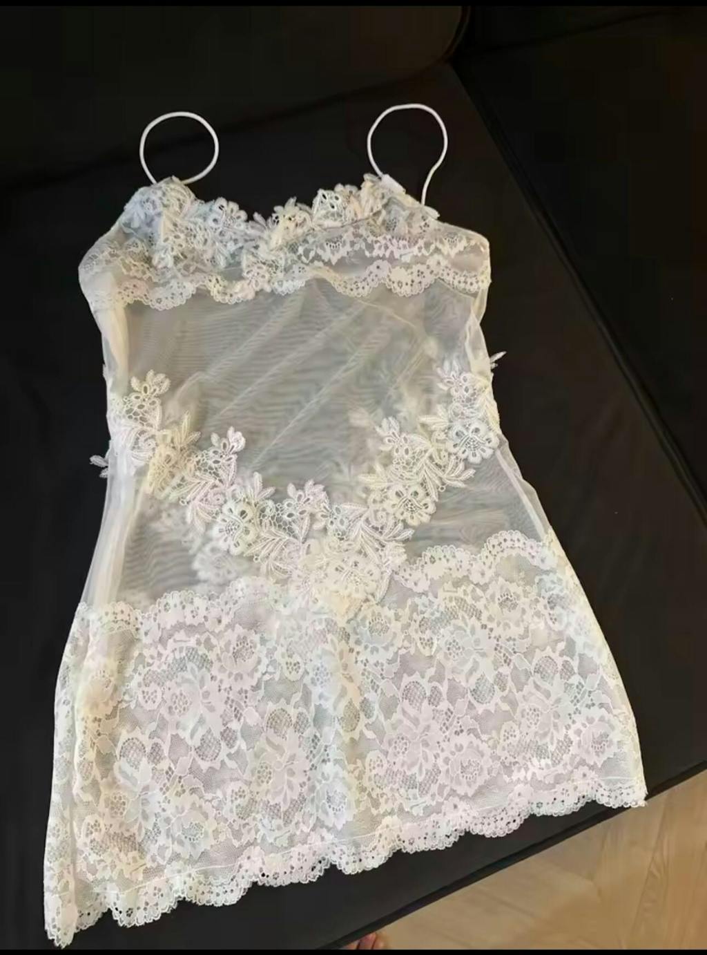 Beyaz Transparan Dantel Mini Elbise – Brode Detaylı Romantik İç Giyim Tasarımı | Madame Mercy (MM202)