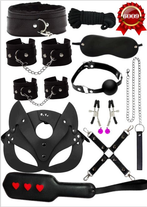 (🖤 Red & Black 7 Parça Bondage Master Set – Maske, Kelepçe, Ağız Topu, Tasma & Flogger (Gizli Gönderim)