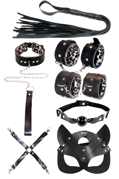 🖤 Red & Black 7 Parça Bondage Master Set – Maske, Kelepçe, Ağız Topu, Tasma & Flogger (Gizli Gönderim)